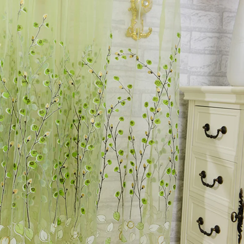 Pastoral Green Willow Sheer Curtains Window Yarn for Living Room Tulle Fabrics Kitchen Gauze Simple Curtain Panel Home Textiles
